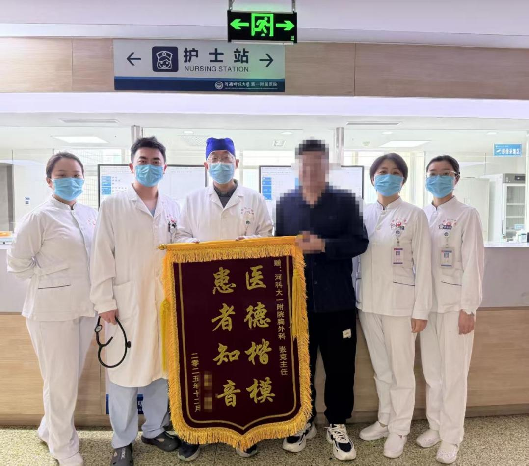 近日,河南科技大学第一附属医院景华院区胸外科主任张克带领团队,联合麻醉科、心血管内科、心脏大血管外科等多学科力量,凭借精湛医术与默契协作,成功为这名特殊患者实施单孔胸腔镜肺癌根治术,在“雷区”遍布的胸腔内精准“排险”,完成了一场跨越数十年的生命二次护航。