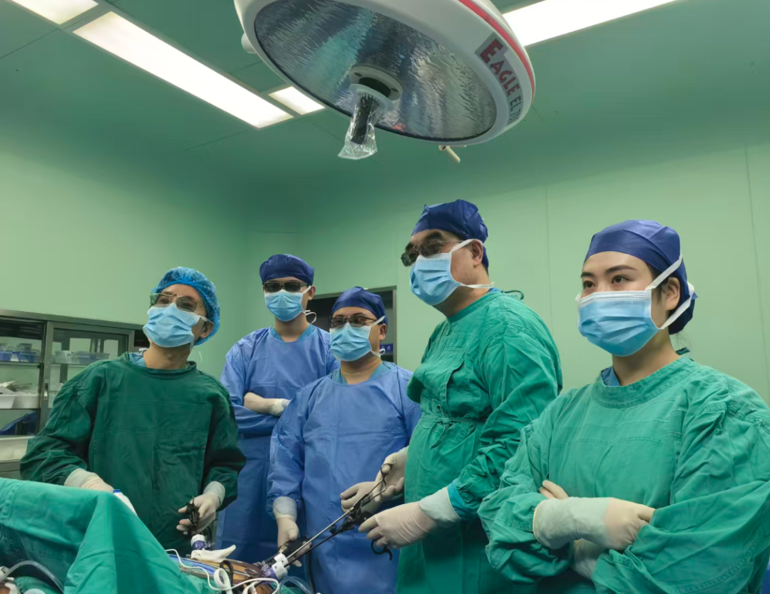面对杜老太复杂的病情,以及她自身患有高血压、糖尿病等基础疾病的挑战,肝胆外科团队没有退缩。他们精心设计手术方案,最终决定在腹腔镜下实施左半肝切除,并同步切除病变胆囊,彻底清石祛灶。手术在郑幼伟的指导下,由科室副主任医师马鹏飞主刀、骨干医师王亚飞配合完成,整个过程精准而高效。随着20颗结石被逐一取出,患者肝内的“石阵”被彻底瓦解,潜藏的癌变风险也得到了有效遏制。